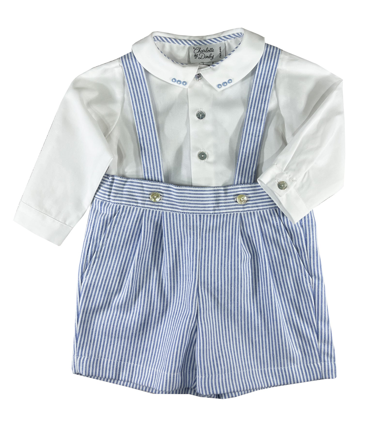Tailored from classic blue and white stripes, the shorts with suspenders feels as gentle as an early morning nautical breeze. Thoughtfully designed, the adjustable waist accommodates growing little ones while ensuring maximum comfort. Deep side pockets add both practicality and classic styling.