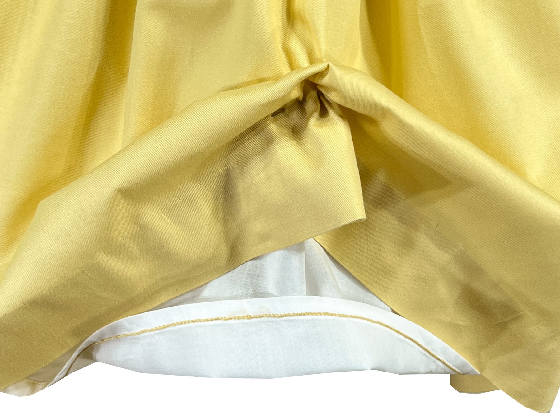 golden yellow dress, fully lined dress, invisible hem