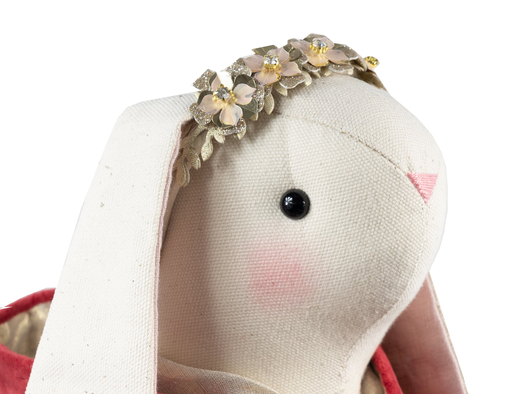 - The bunny’s body and face are made of natural linen and cotton.
