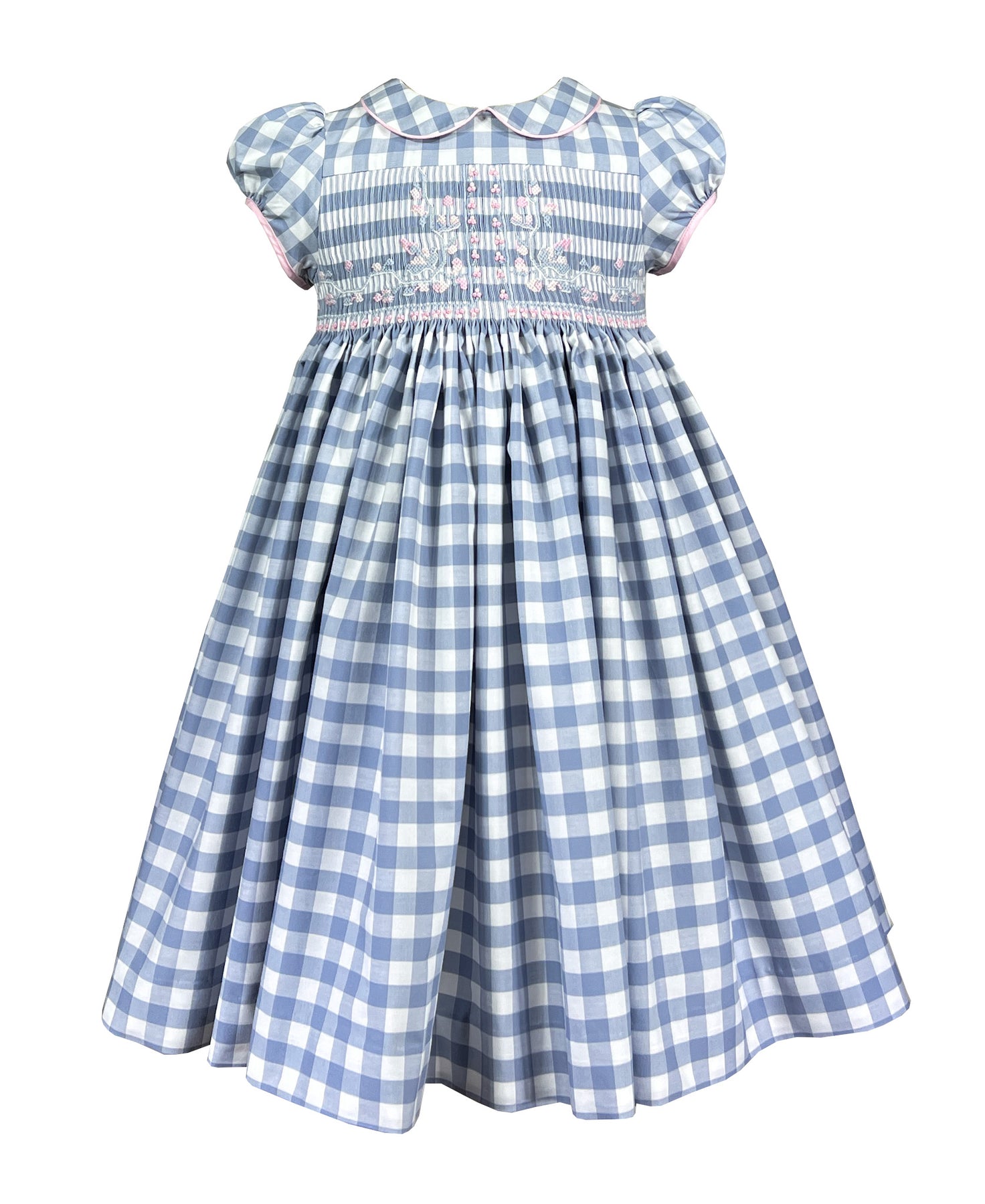 elegant childrens dresses, cross smocked gingham dress, luxury infant clothes