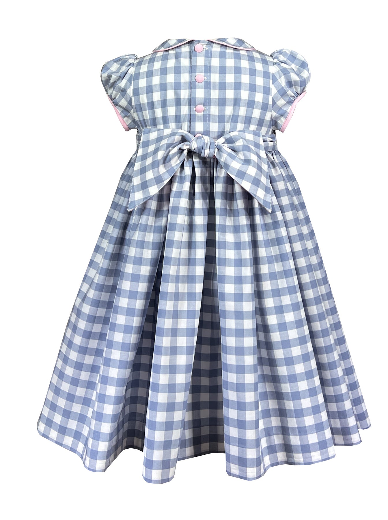 Dove Grey Secret Garden Gingham Cerise Smocked Dress