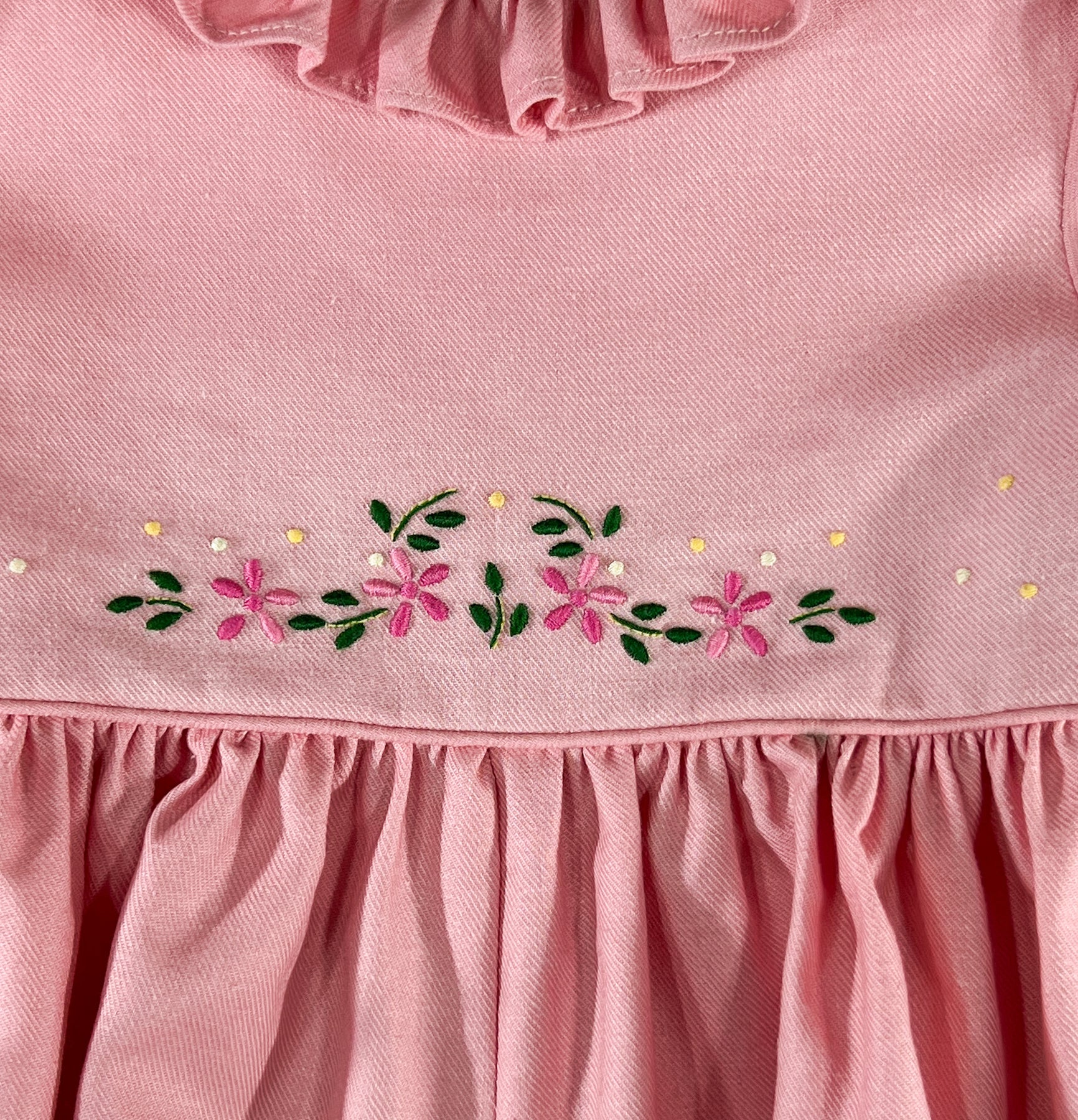 baby shower gift idea, pink daisy embroidery, vintage baby style